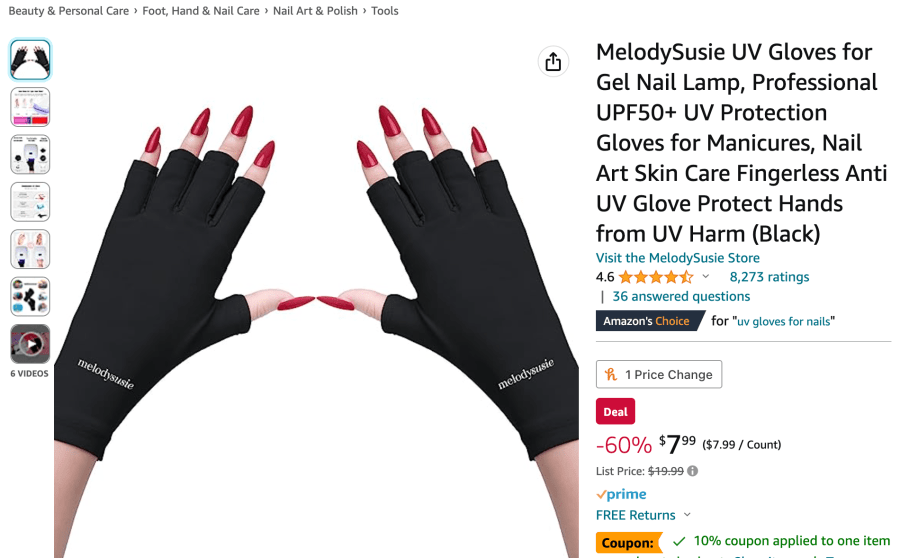 Description: MelodySusie UV Gloves for Gel Nail Lamp protect your hands from harmful UV light and make your feet super jealous.
