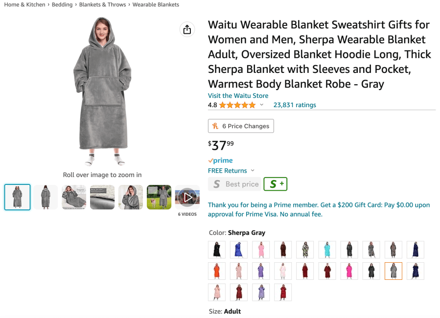 Description: The Waitu Wearable Blanket Sweatshirt is known on the street as the Action Snuggie! And if you’ve never heard your dog laugh, wearing this item for a morning walk will bring those doggie guffaws to full volume.