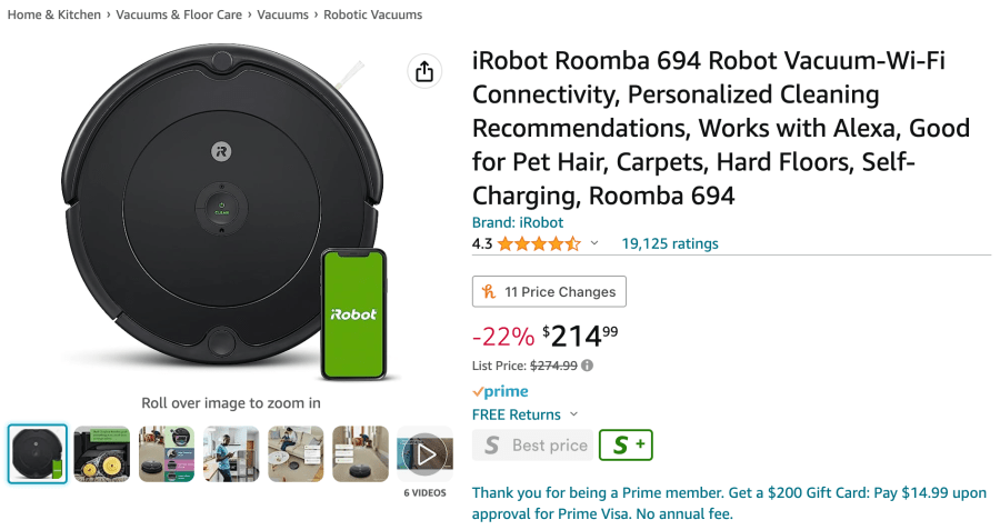 Description: iRobot Roomba 694 has been upgraded from its predecessor with BarkFree technology that electric shocks your dog into blissful quiet submission.