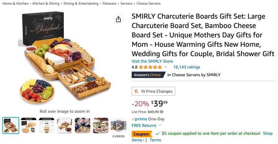 Description: Smirly Charcuterie Board Gift Set: for when you want to impress that newly wedded couple with something they’ll never ever ever use. They wanted cash.
