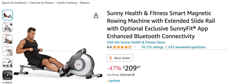 Description: Sunny Health & Fitness Smart Magnetic Rowing Machine comes with this guy, Darryl, to show you how it works, motivate you, and explain how best to hang your clothes over this thing after the first week.