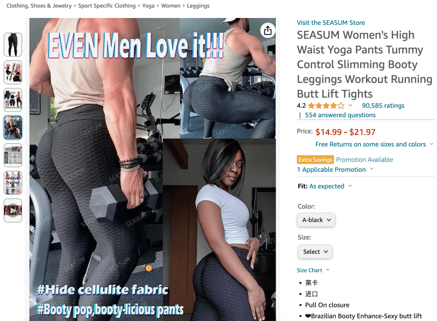 Description: Suuksess Women Scrunch Butt Lifting Seam–I’m sorry, I got distracted by this woman’s waist being apparently 17 inches while her butt is 47. Nice Photoshop, Suuksess.